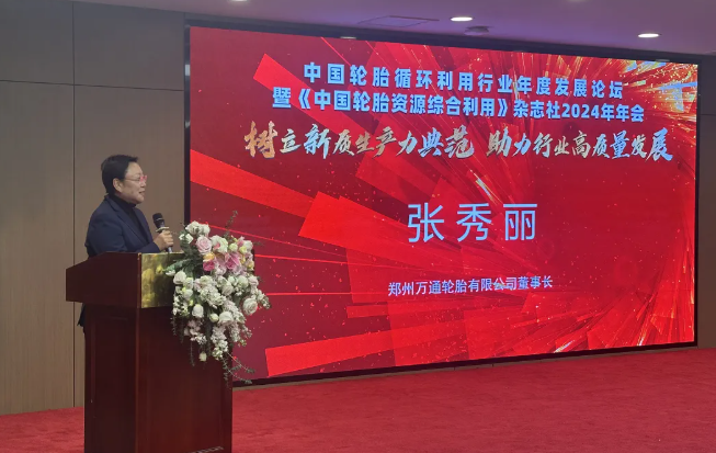 鄭州萬(wàn)通輪胎有限公司張秀麗董事長(zhǎng)分享了《輪胎翻新大有可為》主題演講。