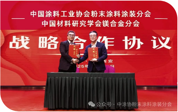 在此次理事會的重要環(huán)節(jié)——簽約儀式上,中國涂料工業(yè)協(xié)會粉末涂料涂裝分會與中國材料研究學會鎂合金分會達成了關于聯(lián)合開發(fā)鎂合金粉末涂裝應用技術和應用場景的戰(zhàn)略合作協(xié)議。