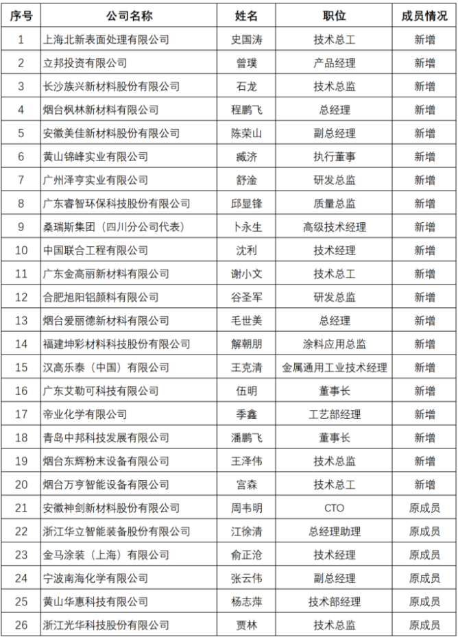 本次理事會上,分會公布了專家組委員會名單,今后凡是涉及粉末涂裝的相關標準,國家政策制定時需要征詢意見,或行業(yè)相關技術問題調研或征詢意見時,將從專家組里抽調。