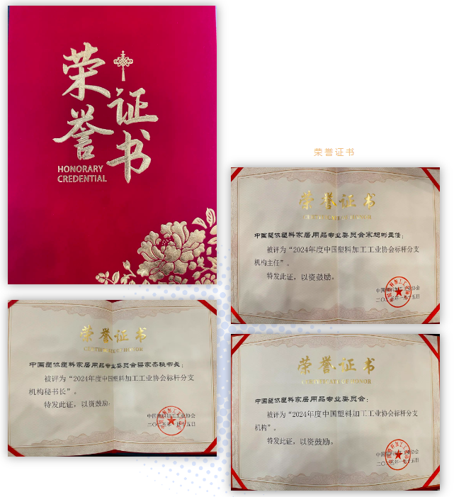 熱烈祝賀中國塑協(xié)塑料家居用品專委會再次獲評為中國塑料加工工業(yè)協(xié)會標桿分支機構;宋旭彬會長再次獲評為標桿分支機構主任;梁家杰常務副會長兼秘書長再次獲評為標桿分支機構秘書長。