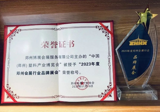 2024年1月18日,由鄭州市商務(wù)局指導(dǎo),鄭州市會(huì)展業(yè)促進(jìn)中心支持,鄭州會(huì)展行業(yè)協(xié)會(huì)主辦,以“賦能高質(zhì)量發(fā)展·營(yíng)造會(huì)展新生態(tài)”為主題的2023鄭州會(huì)展行業(yè)協(xié)會(huì)年會(huì)在鄭州國(guó)際會(huì)展中心召開,由鄭州博展會(huì)展服務(wù)有限公司主辦的中國(guó)(鄭州)塑料產(chǎn)業(yè)博覽會(huì)成功斬獲“2023年度鄭州會(huì)展行業(yè)品牌展會(huì)”榮譽(yù)。