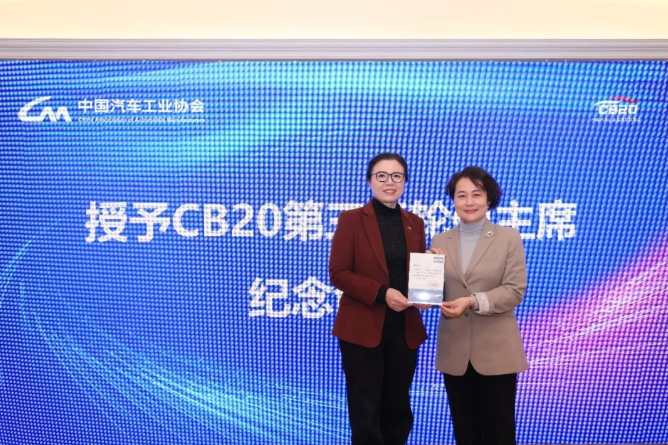 根據(jù)聯(lián)席會工作條例,會議進行了輪值主席換屆交接儀式。為感謝尹捷女士在第三任輪值主席期間所做的貢獻,柳燕女士代表中國汽車工業(yè)協(xié)會以及CB20聯(lián)席會,為尹捷女士頒發(fā)CB20第三任輪值主席紀念證書。