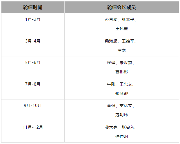 會議最后對商會工作近期工作進行討論,同時通過全體成員舉手表決2025年輪值會長人員名單,分別為: