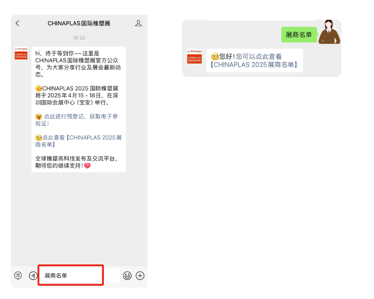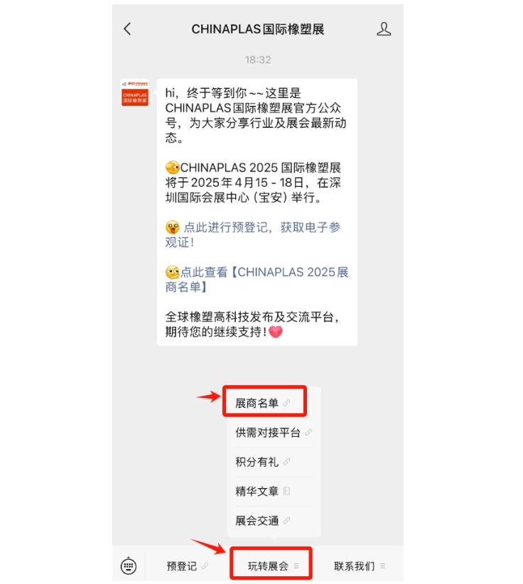 點(diǎn)擊上方卡片,關(guān)注CHINAPLAS國(guó)際橡塑展官方微信公眾號(hào),點(diǎn)擊菜單欄【玩轉(zhuǎn)展會(huì)】 - 【展商名單】。