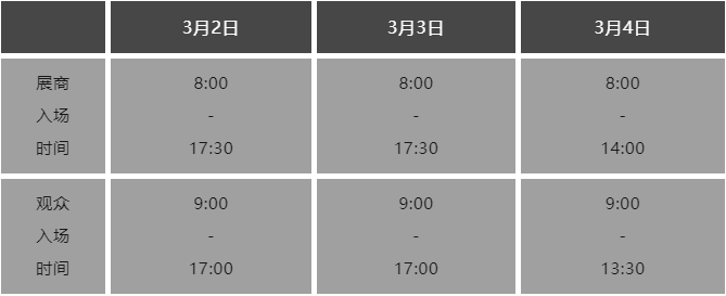 各位展商請(qǐng)于2月27日-3月1日,8:30-17:30,到「物流通道7號(hào)門(mén)」報(bào)到,請(qǐng)攜帶名片或身份證及參展合同領(lǐng)取參展證件,進(jìn)館前展位費(fèi)需要支付全部款項(xiàng)。