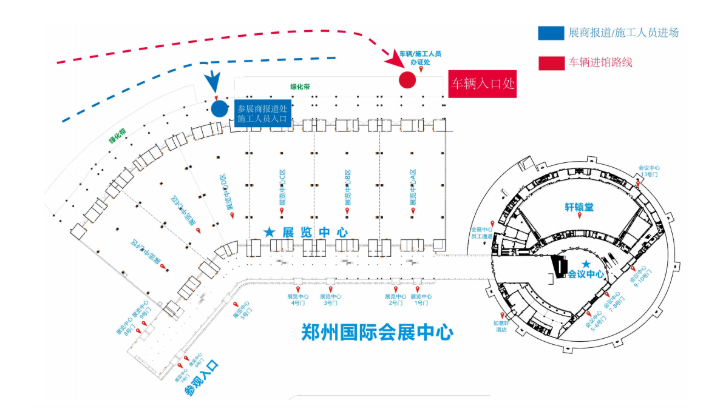 備注:此線(xiàn)路由會(huì)展中心與交警協(xié)商的貨車(chē)進(jìn)館紅色路線(xiàn),其他線(xiàn)路不可通行