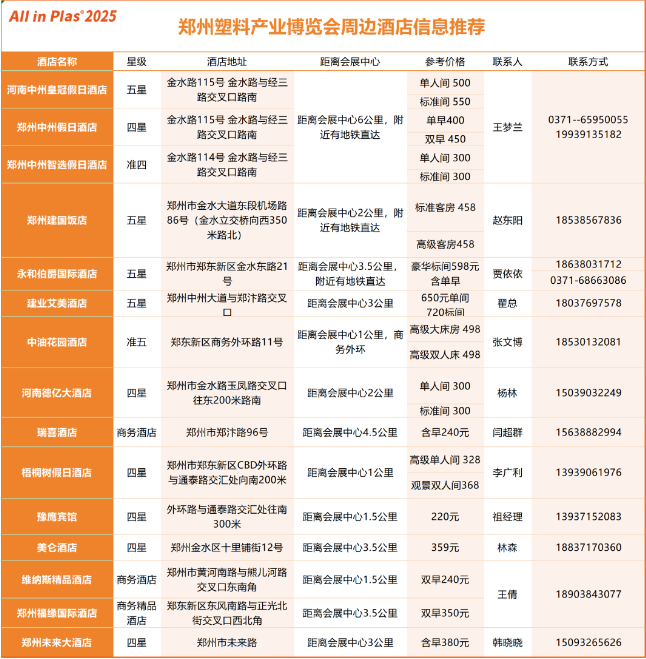 AllinPlas2025鄭州塑博會(huì),3月2-4日,將在鄭州國(guó)際會(huì)展中心盛大開(kāi)幕!展會(huì)為期3天,展覽面積近5萬(wàn)平方米,下面附上一份詳細(xì)的「參觀指南」,包括部分展商名錄、展會(huì)時(shí)間、入場(chǎng)方式交通信息、住宿信息等建議大家收藏以便隨時(shí)查看!