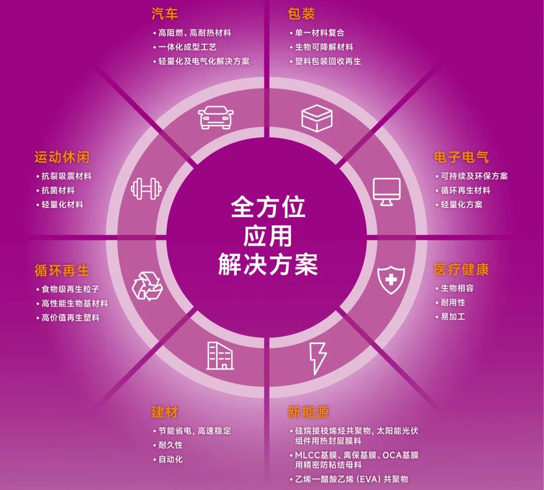 全面覆蓋汽車輕量化與智能化、高端包裝材料、電子電氣精密部件、醫(yī)療健康器械、運動休閑裝備、循環(huán)再生技術、綠色建材以及新能源領域,提供從材料研發(fā)到工藝創(chuàng)新的全方位應用解決方案,助力產(chǎn)業(yè)升級與可持續(xù)發(fā)展!