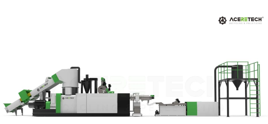 最后由艾斯瑞特的壓實(shí)造粒機(jī)進(jìn)行再造粒,整套系統(tǒng)穩(wěn)定高效,生產(chǎn)的粒子可直接投入生產(chǎn)線,進(jìn)行吹膜管材擠出和注塑生產(chǎn)等工藝,實(shí)現(xiàn)PE的全生命周期回收。