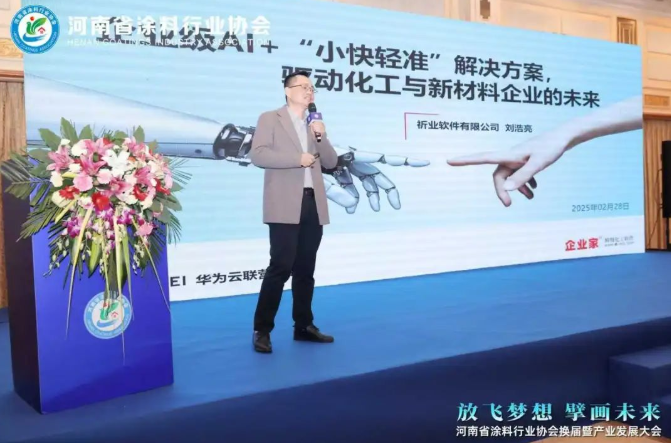 大會現(xiàn)場,數(shù)字化產(chǎn)業(yè)聯(lián)盟秘書長/祈業(yè)(佛山)軟件有限公司總經(jīng)理劉浩亮作《企業(yè)級AI+小快輕準數(shù)字化轉型方案,驅動新材料企業(yè)的未來》主題分享,廣東政和工程有限公司總經(jīng)理曾天鷹作《精細化工建設項目管理痛點及解決方案》主題分享,廣東金宗機械有限公司副總經(jīng)理鐘聲宏作《數(shù)字化工廠關鍵設備的應用與探索》主題分享,濮陽展辰副總經(jīng)理田軍作《數(shù)字化轉型助力企業(yè)提升新質生產(chǎn)力》主題分享,詳細解讀精細化工涂料行業(yè)數(shù)字化轉型、智能制造解決方案以及發(fā)展成果。