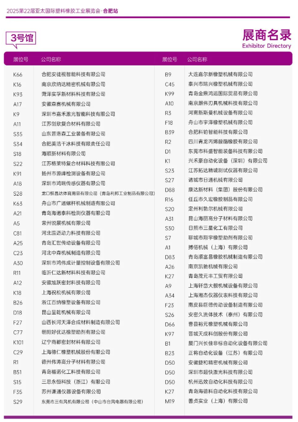 倒計時7天!2025亞太橡塑展?合肥站:展商名錄大公開,塑料橡膠盛宴即將開啟!
