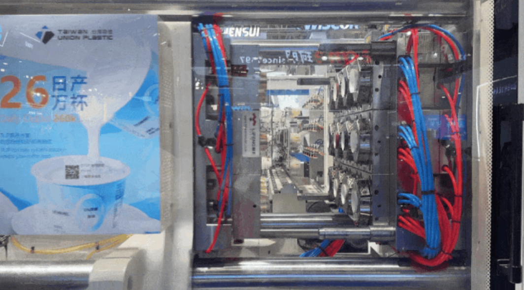 ▲全自動化硅膠128腔模具,制品為光伏產(chǎn)業(yè)電纜接頭O型密封圈,O形圈線徑7.10mm,單顆體積僅有0.0574gram,采用奧地利ELMET開放式冷流道,沒有溢料槽設(shè)計不浪費硅膠料,完美實現(xiàn)128腔模內(nèi)流動平衡,注塑機采用SmartPower 120高效伺服液壓注塑機搭配35螺桿,挑戰(zhàn)大螺桿小計量的應(yīng)用極限。