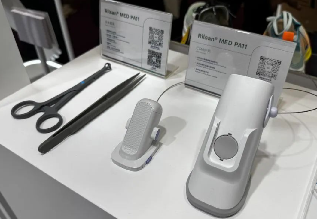 右丨Rilsan? MED PA11材料用于CGM外殼。良好的生物相容性(Ⅲ類材料);優(yōu)異的剛性支撐內(nèi)部結(jié)構(gòu)。