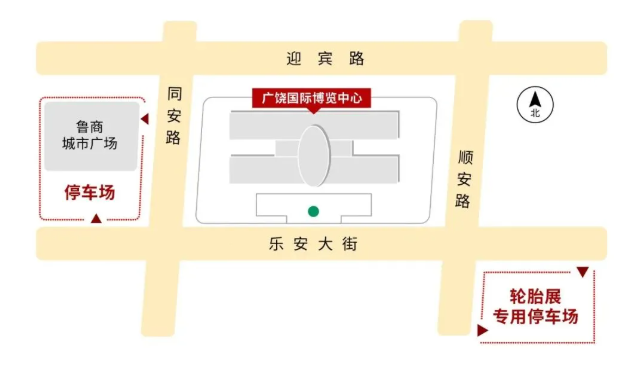 1)樂(lè)安大街和順安路交叉口東南角輪胎展專(zhuān)用停車(chē)場(chǎng)(圖上紅色區(qū)域)