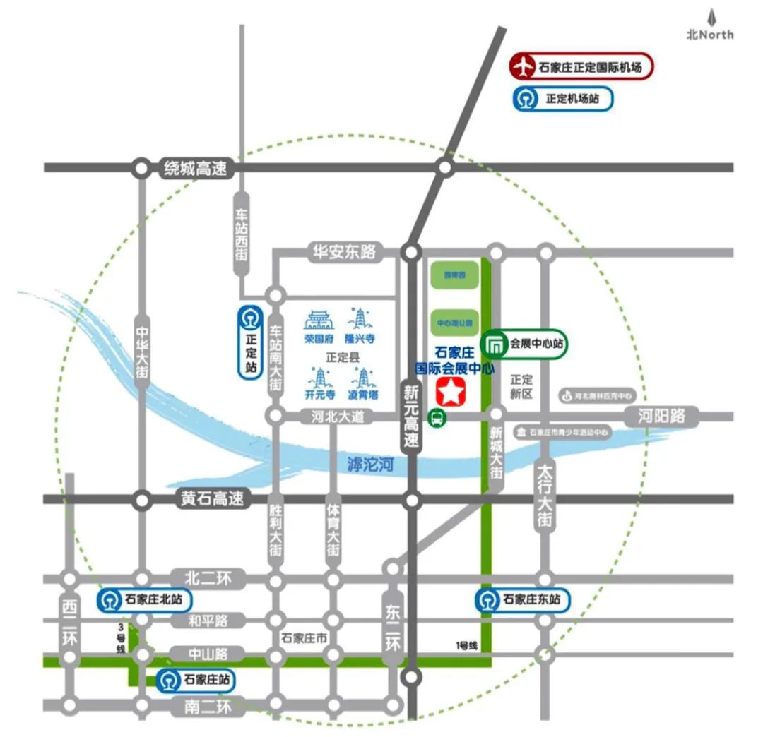 乘公交正微1路(園博園方向),至河北出版?zhèn)髅郊瘓F(tuán)下車,步行889米即達(dá)石家莊國際會(huì)展中心。