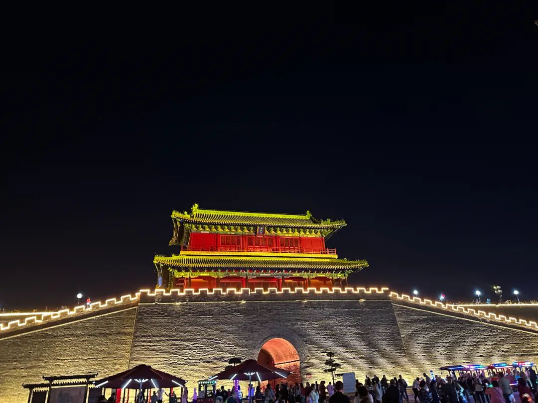 吃過晚飯后,登上正定古城墻,可以騎自行車,也可以隨意走走。