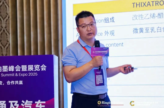 在本次會議中,海名斯特殊化學(xué)技術(shù)業(yè)務(wù)經(jīng)理馬寶海聚焦于水性金屬漆中鋁粉定向的技術(shù)難題,介紹了該公司新推出的流變助劑THIXATROL 5050W和P2100W。傳統(tǒng)水性體系因水的揮發(fā)速率較低,常導(dǎo)致金屬顏料定向性差、漆膜外觀欠佳。馬寶海指出,這兩款助劑通過強(qiáng)化觸變行為和空間位阻力,實(shí)現(xiàn)了金屬片狀顏料在漆膜中的規(guī)整排列,顯著提升Flop Index值,讓車身“自帶高光”,同時保持低粘度、低后增稠,兼顧施工性與穩(wěn)定性。此外,這類材料無需研磨,適配范圍廣,有助于加快產(chǎn)品迭代,為涂料工廠帶來更高配方自由度和生產(chǎn)效率。