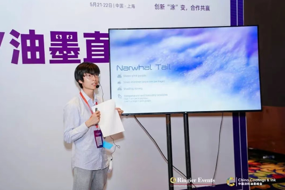 馮立海分享了公司在數(shù)碼UV油墨領(lǐng)域的最新成果與應(yīng)用布局。他重點(diǎn)介紹了多款應(yīng)用于工業(yè)領(lǐng)域的創(chuàng)新油墨,例如:專為3D包裝容器表面直接印刷設(shè)計的UV固化噴墨打印油墨ULTRA JET DUV-C,它具有優(yōu)異的附著力、高耐性及廣泛的色彩范圍,尤其適用于工業(yè)化OnePass打印;ULTRA JET DUV-CP則是ULTRA JET DUV-C的升級款,“其更高粘度和顆粒密度使得它在印刷效率和打印效果方面達(dá)到前所未有的水平?!瘪T立海特別指出。
