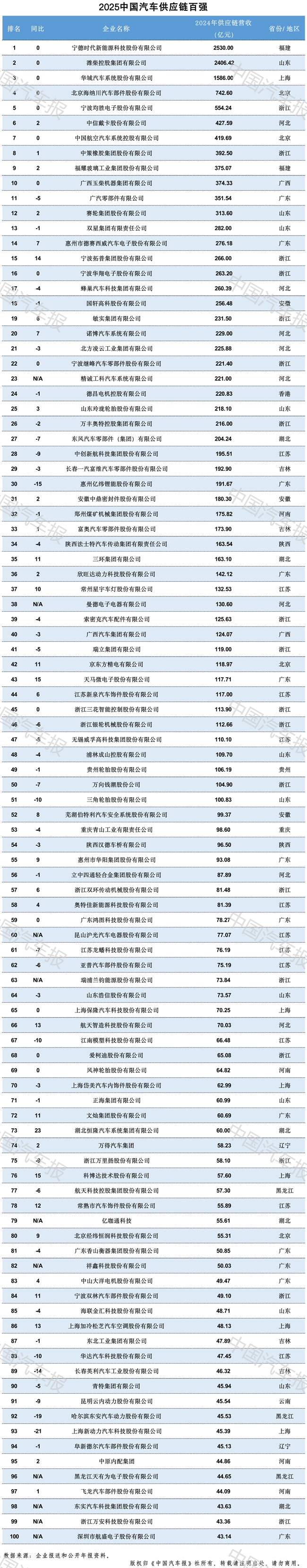多家輪胎上榜,2025汽車供應(yīng)鏈“雙百強(qiáng)”出爐!