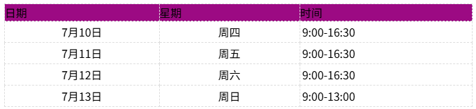 將于7月10-13日