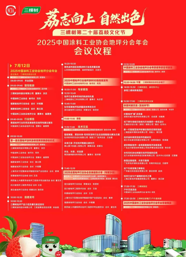 2025年作為“十四五”規(guī)劃收官與“十五五”規(guī)劃謀篇布局的關鍵之年,對于各行業(yè)深化改革、構建新發(fā)展格局意義非凡。在此宏觀背景下,地坪行業(yè)也面臨著轉型升級的重要契機。大力推進現(xiàn)代化產業(yè)體系建設,加快發(fā)展新質生產力,推進綠色低碳發(fā)展,推動產業(yè)鏈供應鏈優(yōu)化升級,成為地坪行業(yè)實現(xiàn)高質量發(fā)展的必由之路。本次以“促穩(wěn)提質,綠色發(fā)展”為主題的年會應運而生,恰逢三棵樹第二十屆荔枝文化節(jié)同期開啟,不僅為地坪行業(yè)內的交流合作搭建了廣闊平臺,更是行業(yè)積極響應時代號召,探索在新形勢下如何通過技術創(chuàng)新、綠色發(fā)展以及數(shù)智轉型,突破現(xiàn)有發(fā)展瓶頸,實現(xiàn)可持續(xù)發(fā)展的一次重要實踐。它承載著推動地坪行業(yè)在復雜多變的市場環(huán)境中找準方向、穩(wěn)健前行,邁向高質量發(fā)展新階段的重要使命,對整個地坪行業(yè)的未來走向具有深遠影響。