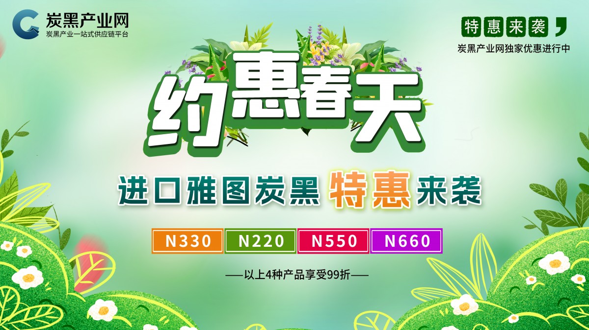 春日好時節(jié),開工旺季到!為回饋廣大用戶的長期支持與厚愛,炭黑產(chǎn)業(yè)網(wǎng)特別推出“獨家優(yōu)惠”活動:即日起,凡通過炭黑商城、微信客服或抖音平臺(直播、短視頻)任一線上渠道聯(lián)系我們,并下單購買進口雅圖N330/N220/N550/N660炭黑產(chǎn)品,即可享受99折優(yōu)惠!機不可失,速來搶購吧!