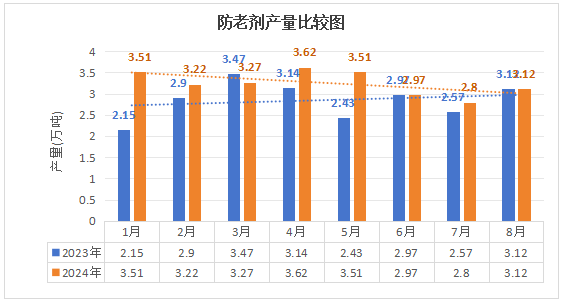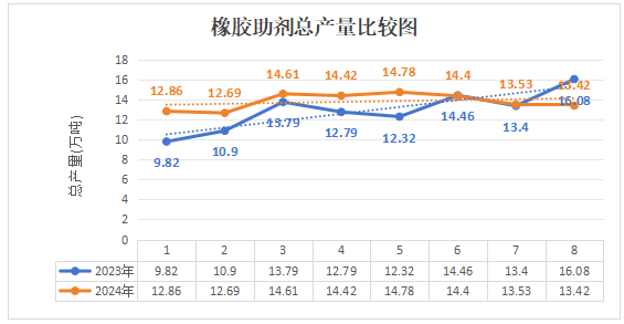 橡膠助劑 | 平穩(wěn)增長!2024年前8月產量圖