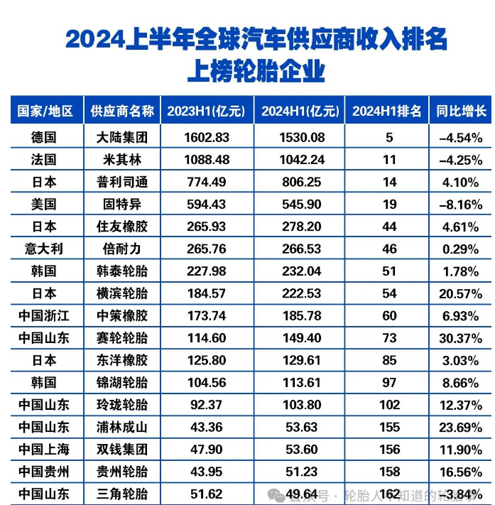 在這份極具權(quán)威性的排名中,輪胎行業(yè)的領(lǐng)軍者們表現(xiàn)尤為突出,大陸集團(tuán)、米其林、普利司通、固特異、住友橡膠、倍耐力等全球知名輪胎品牌赫然在列。這些企業(yè)在全球輪胎市場上占據(jù)著舉足輕重的地位,其產(chǎn)品廣泛裝配于各類汽車車型,為汽車產(chǎn)業(yè)的蓬勃發(fā)展奠定了堅(jiān)實(shí)基礎(chǔ)。
