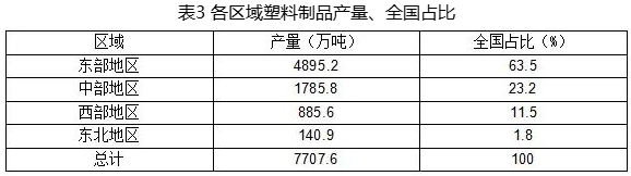 4、各區(qū)域塑料制品產(chǎn)量