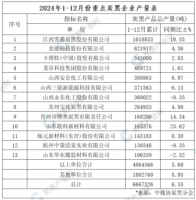 據(jù)中橡協(xié)炭黑分會全國炭黑企業(yè)統(tǒng)計,2024年完成炭黑生產(chǎn)量為668萬噸,比去年同期了6.55%。
