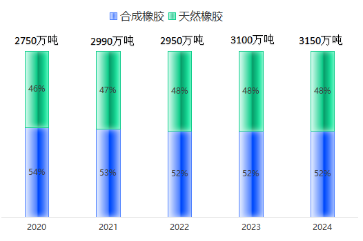 2020-2024年全球橡膠消費(fèi)量增長情況