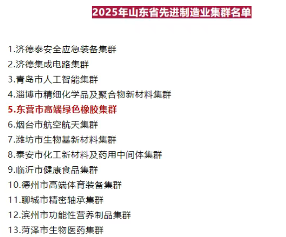 東營橡膠集群,入選省先進(jìn)制造業(yè)集群