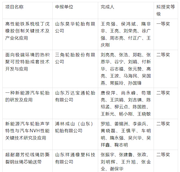 2024年度山東省橡膠行業(yè)科學(xué)技術(shù)獎(jiǎng)擬授獎(jiǎng)項(xiàng)目的公示