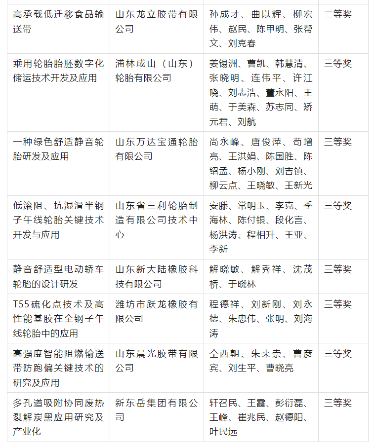 2024 年度山東省橡膠行業(yè) 科學(xué)技術(shù)獎(jiǎng)擬授獎(jiǎng)項(xiàng)目名單