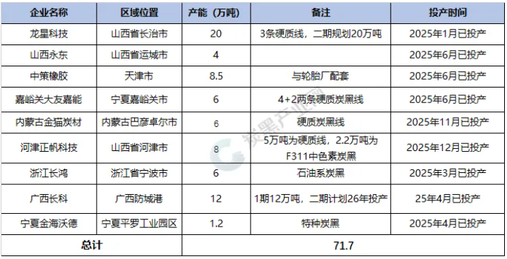 01 2025原生炭黑項(xiàng)目投產(chǎn)匯總