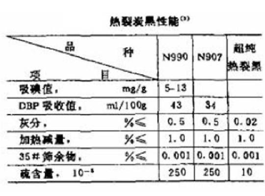 熱裂解炭黑是炭黑品種中比表面積最低的一類,基本上以單個球形粒子存在,不熔結(jié)或聚結(jié)成聚集體,其表面含 氧量亦很少(0.1%-0.3%)。熱解法生產(chǎn)出來的炭黑具有:純度高、硬碳少、灰分低、硫份低等特點。熱裂解炭黑還具有性能特殊,結(jié)構(gòu)特低,表面光滑,使其在加工性、填充性、彈回性及電阻等方面都優(yōu)于天然氣半補強炭黑。
