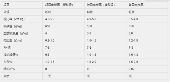 超導(dǎo)電炭黑的使用量為普通炭黑用量的1/2~1/5時,便可達(dá)到相同效果。
