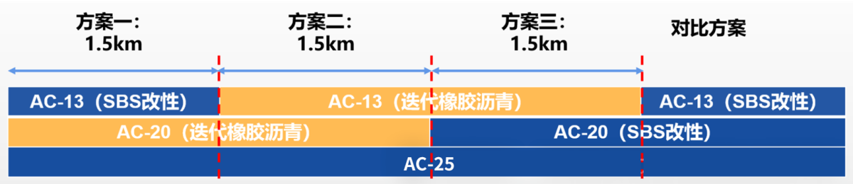 試驗(yàn)段選址于廣西平容高速公路,全長(zhǎng)4.5公里,采用“單中面層”“單上面層”“上中面雙層”三種鋪筑方案,與國(guó)內(nèi)典型的SBS改性面層(PG76-22)進(jìn)行對(duì)比測(cè)試。測(cè)試過程中,迭代橡膠瀝青(PG88-28)的瀝青用量、施工工藝與對(duì)比方案保持一致,僅通過工藝創(chuàng)新便實(shí)現(xiàn)了路用性能的顯著提升。