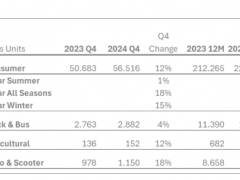 【炭黑產(chǎn)業(yè)網(wǎng)】4月11日消息,歐洲輪胎市場(chǎng)在2024年呈現(xiàn)出復(fù)雜多變的態(tài)勢(shì)。根據(jù)歐洲輪胎和橡膠制造商協(xié)會(huì)(ETRMA)最新披露的數(shù)據(jù),乘用車輪胎市場(chǎng)出現(xiàn)了回暖跡象,而卡車輪胎市場(chǎng)則依舊面臨挑戰(zhàn)。數(shù)據(jù)顯示,2024年乘用車輪胎的銷量有所提升,這主要得益于全季節(jié)輪胎的強(qiáng)勁