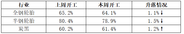 輪胎及炭黑行業(yè)開(kāi)工情況統(tǒng)計(jì)表