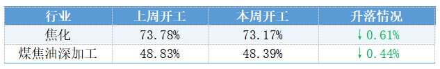 從供應(yīng)情況來看,焦煤價(jià)格走勢(shì)偏弱且仍存下行預(yù)期,在原料焦煤持續(xù)讓利的情況下,主流焦企運(yùn)營(yíng)尚有利潤(rùn)。然而,焦企下游的鋼廠焦炭庫(kù)存普遍處于中高位,且隨著多數(shù)鋼廠冬檢臨近,停產(chǎn)檢修增加,焦炭剛需一般。焦企剛需承壓,加之受近期環(huán)保檢查影響,產(chǎn)地部分焦企開工有所降低,據(jù)炭黑產(chǎn)業(yè)網(wǎng)統(tǒng)計(jì),截至今日樣本焦企開工負(fù)荷在73.17%,降0.61%,變化幅度不大,煤焦油供應(yīng)窄幅波動(dòng)。