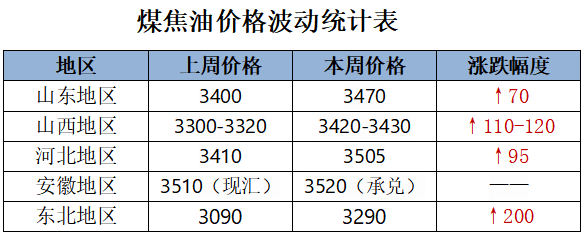 受成本利好提振,下游深加工企業(yè)意向挺價,但主要深加工產(chǎn)品跟漲幅度不一。本周煤瀝青價格漲價氛圍濃厚,局部地區(qū)小漲50元/噸。蒽油和工業(yè)萘在市場需求支撐下漲價50-300元/噸,漲幅較大。