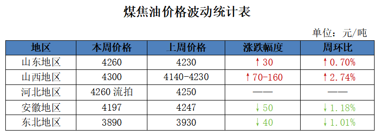 本周,國內(nèi)高溫煤焦油市場拍賣較多,主產(chǎn)區(qū)高溫煤焦油價格繼續(xù)偏強(qiáng)運(yùn)行。