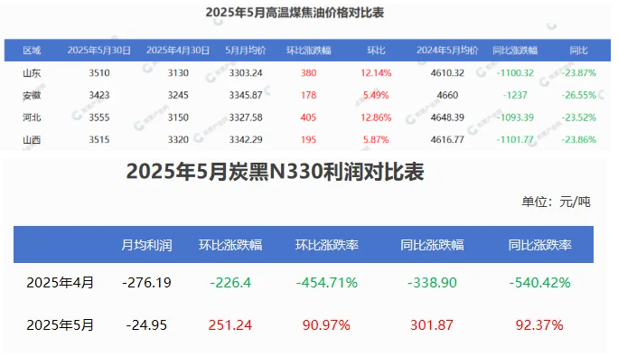 高溫煤焦油和炭黑5月份價(jià)格呈現(xiàn)“v”字形走向,煤焦油主區(qū)域價(jià)格環(huán)比上月漲幅在170-405元/噸,N330環(huán)比上月價(jià)差在500元/噸,月中旬價(jià)格來到地位,隨著政策利好市場(chǎng)帶動(dòng)價(jià)格反彈,市場(chǎng)心態(tài)轉(zhuǎn)好,炭黑廠完成去庫(kù)存且有待交付訂單支撐價(jià)格。