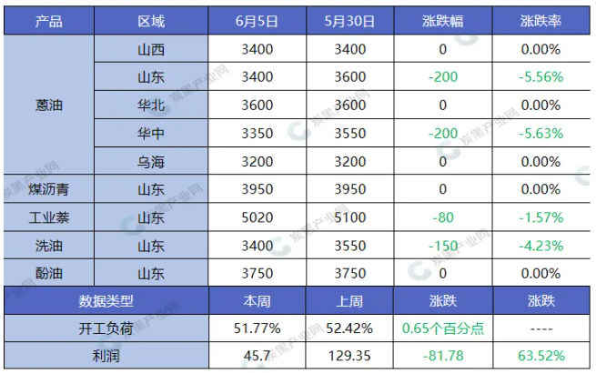 相關(guān)產(chǎn)品:本周深加工開工負(fù)荷為51.77%,較上周減少0.65%,攀枝花和云維飛虎裝置檢修,影響整體開工負(fù)荷。煤瀝青價格暫穩(wěn),蒽油跟跌下行。