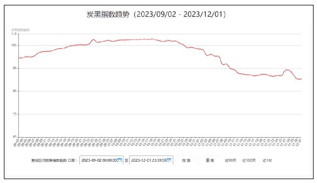 炭黑產(chǎn)業(yè)網(wǎng)根據(jù)市場N330/N220/N550三個牌號最新市場成交價格,并分別按一、二、三線品牌權(quán)重分配計算后得出今日最新炭黑指數(shù)為90.33,與上周相比本周炭黑指數(shù)呈微揚后抑表現(xiàn)。